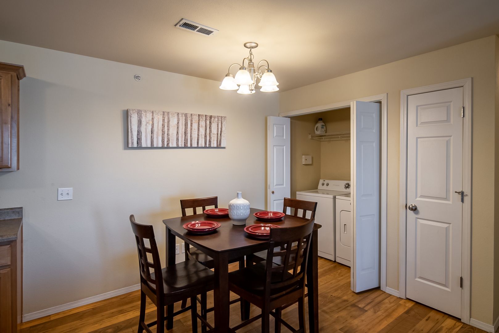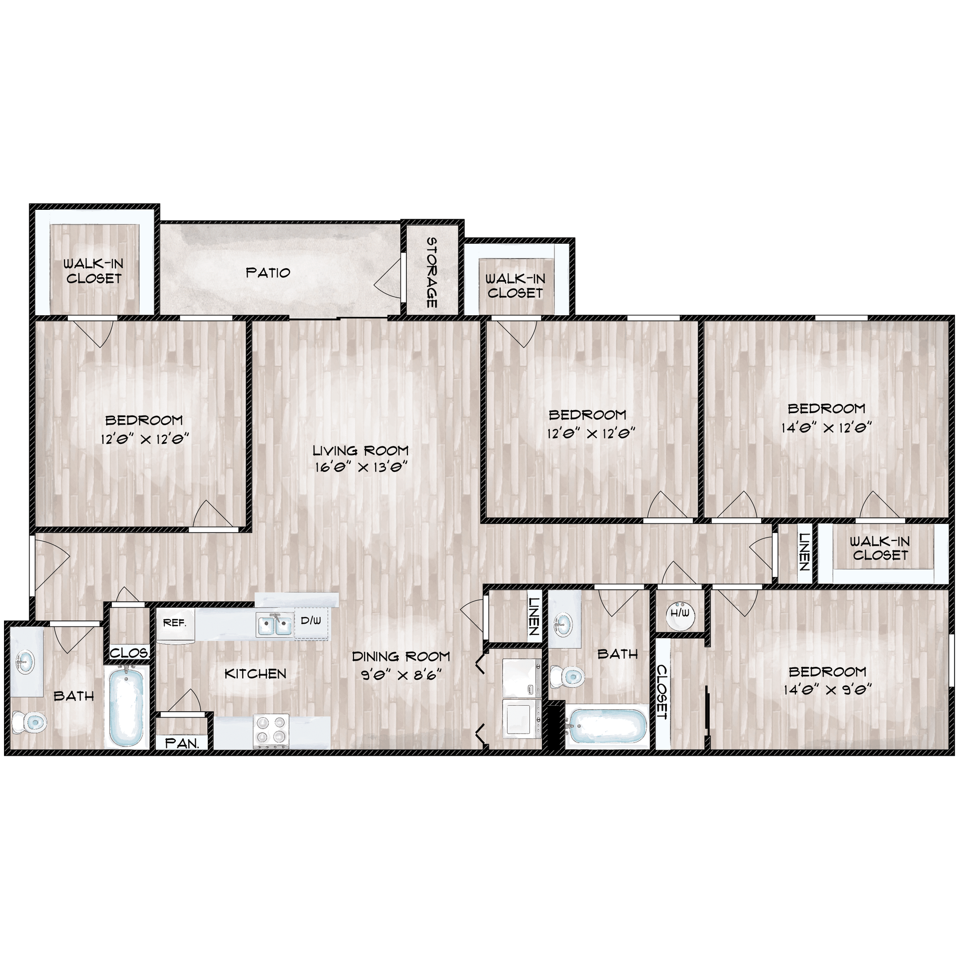 We offer beautiful studio, one, two, three, or four-bedroom apartments for rent, including fully furnished apartments. Each apartment includes a fully equipped kitchen and vinyl wood flooring. Select floor plans have additional storage, quartz countertops, walk-in closets, and washer and dryer connections. A balcony increases your living space and provides a relaxing space to unwind.